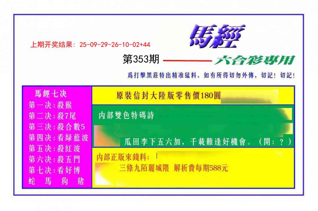 354期:澳门六合彩『澳门马经图』